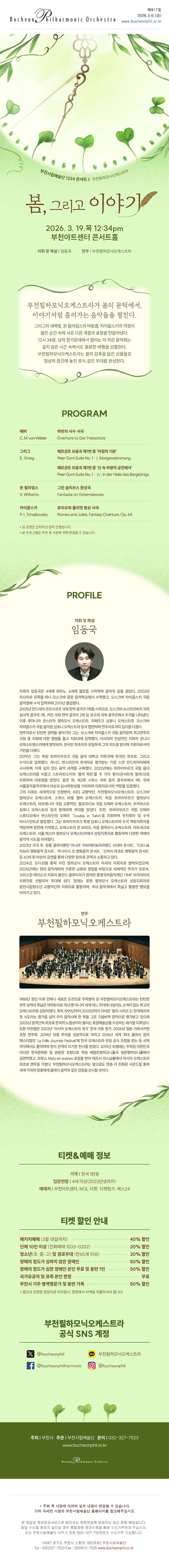[3.19] 부천시립예술단 1234 콘서트Ⅰ - 부천필하모닉오케스트라 '1234 콘서트 : 봄, 그리고 이야기 Spring, and Stories'